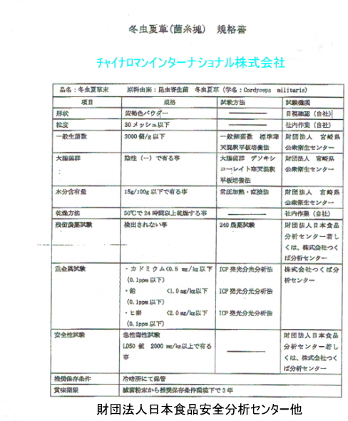 冬虫夏草成分表 |